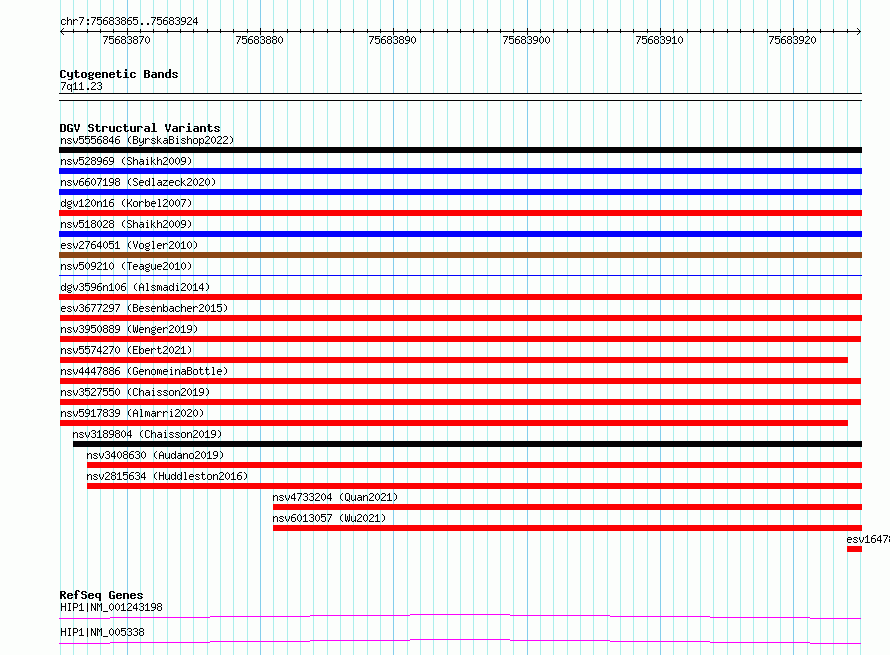 Variant DetailsVariant: nsv1137258| Internal ID | 19282161 | | Landmark | | | Location Information | | | Cytoband | 7q11.23 | | Allele length | | Assembly | Allele length | | hg38 | 60 | | hg19 | 60 |