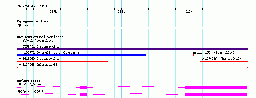 | | Variant Type | CNV deletion | | Copy Number | | | Allele State | | | Allele Origin | | | Probe Count | | | Validation Flag | | | Merged Status | M | | Merged Variants | | | Supporting Variants | nssv3990073 | | Samples | KWS2 | | Known Genes | PDGFA | | Method | Sequencing | | Analysis | HugeSeq | | Platform | Illumina HiSeq 2000 | | Comments | | | Reference | Alsmadi_et_al_2014 | | Pubmed ID | 24896259 | | Accession Number(s) | nsv1137568