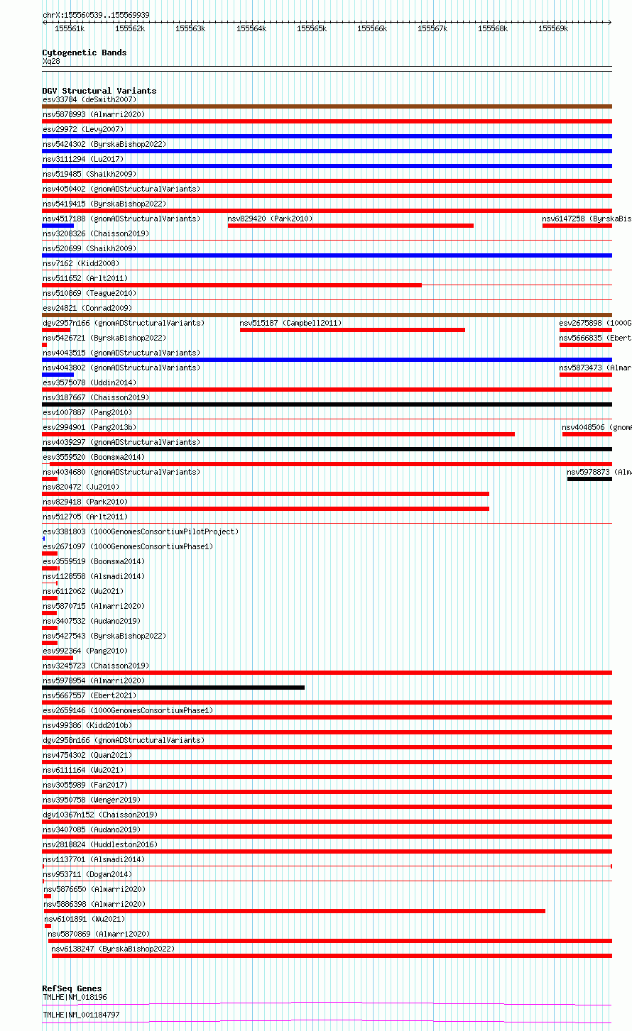 Variant DetailsVariant: nsv1137701| Internal ID | 19259433 | | Landmark | | | Location Information | | | Cytoband | Xq28 | | Allele length | | Assembly | Allele length | | hg38 | 9401 | | hg19 | 9401 |
