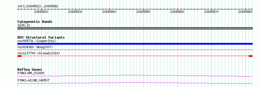 | | Variant Type | CNV deletion | | Copy Number | | | Allele State | | | Allele Origin | | | Probe Count | | | Validation Flag | | | Merged Status | M | | Merged Variants | | | Supporting Variants | nssv3985271, nssv3967978 | | Samples | KWS2, KWS1 | | Known Genes | PINK1 | | Method | Sequencing | | Analysis | HugeSeq | | Platform | Illumina HiSeq 2000 | | Comments | | | Reference | Alsmadi_et_al_2014 | | Pubmed ID | 24896259 | | Accession Number(s) | nsv1137740