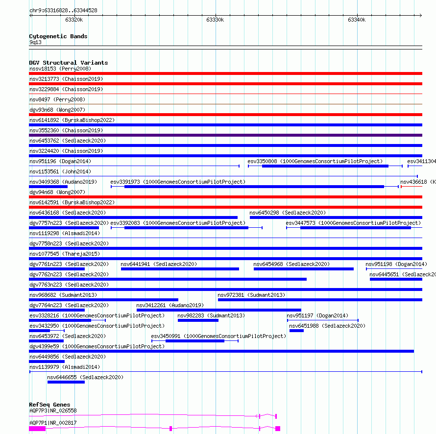 Variant DetailsVariant: nsv1139979| Internal ID | 19286617 | | Landmark | | | Location Information | | | Cytoband | 9q13 | | Allele length | | Assembly | Allele length | | hg38 | 27701 | | hg19 | 27701 |