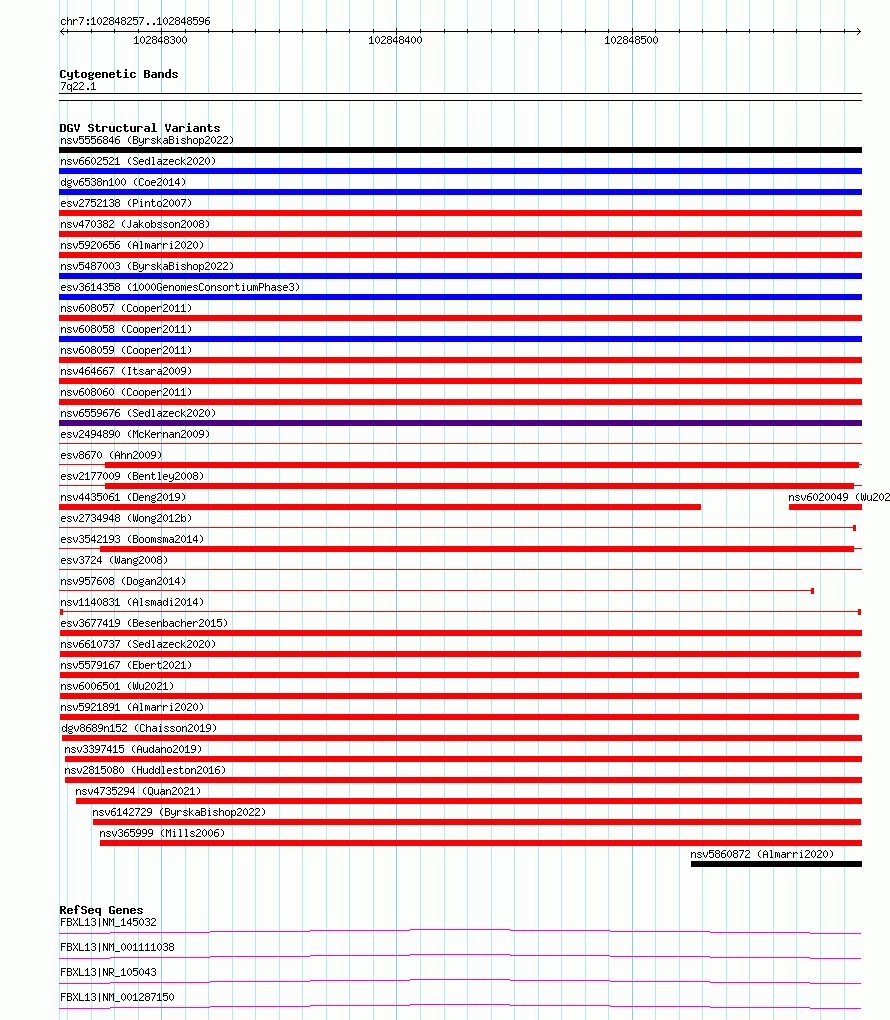 Variant DetailsVariant: nsv1140831| Internal ID | 19257192 | | Landmark | | | Location Information | | | Cytoband | 7q22.1 | | Allele length | | Assembly | Allele length | | hg38 | 340 | | hg19 | 340 |