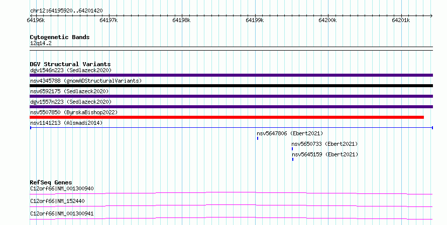 Variant DetailsVariant: nsv1141213| Internal ID | 19248439 | | Landmark | | | Location Information | | | Cytoband | 12q14.2 | | Allele length | | Assembly | Allele length | | hg38 | 5501 | | hg19 | 5501 |
