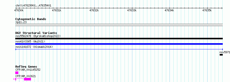 Variant DetailsVariant: nsv1141672| Internal ID | 19261984 | | Landmark | | | Location Information | | | Cytoband | Xp11.23 | | Allele length | | Assembly | Allele length | | hg38 | 5501 | | hg19 | 5501 |