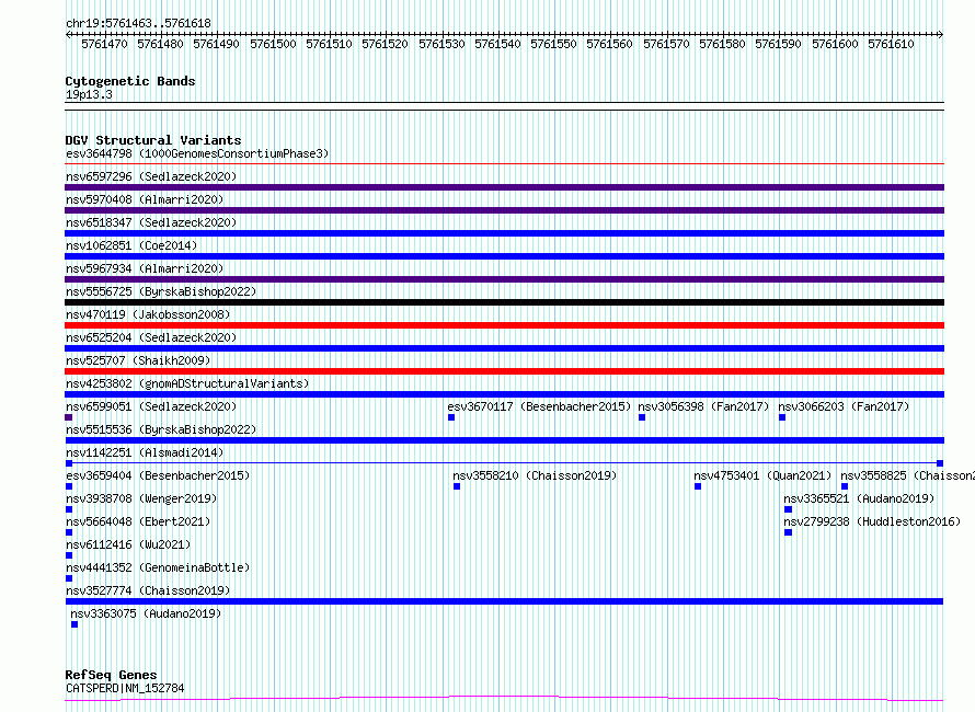 Variant DetailsVariant: nsv1142251| Internal ID | 19264073 | | Landmark | | | Location Information | | | Cytoband | 19p13.3 | | Allele length | | Assembly | Allele length | | hg38 | 156 | | hg19 | 156 |