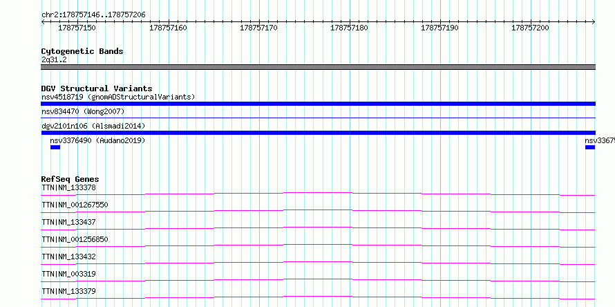 Variant DetailsVariant: nsv1142973| Internal ID | 18930255 | | Landmark | | | Location Information | | | Cytoband | 2q31.2 | | Allele length | | Assembly | Allele length | | hg38 | 61 | | hg19 | 61 |