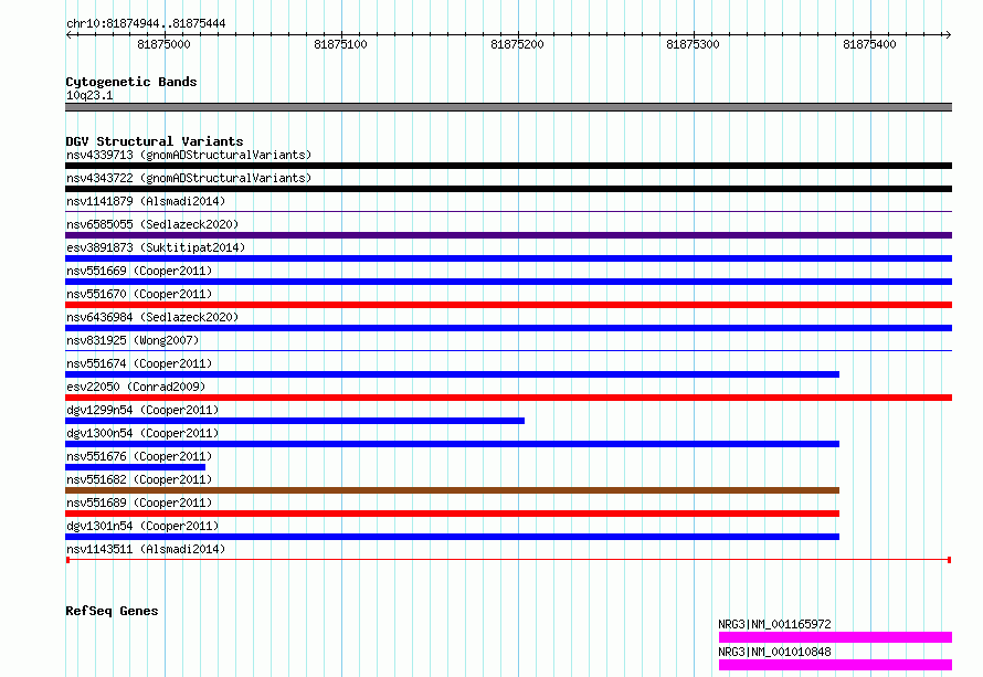 Variant DetailsVariant: nsv1143511| Internal ID | 19251832 | | Landmark | | | Location Information | | | Cytoband | 10q23.1 | | Allele length | | Assembly | Allele length | | hg38 | 501 | | hg19 | 501 |