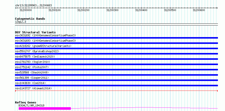 Variant DetailsVariant: nsv1143727| Internal ID | 19286394 | | Landmark | | | Location Information | | | Cytoband | 13q12.3 | | Allele length | | Assembly | Allele length | | hg38 | 701 | | hg19 | 701 |