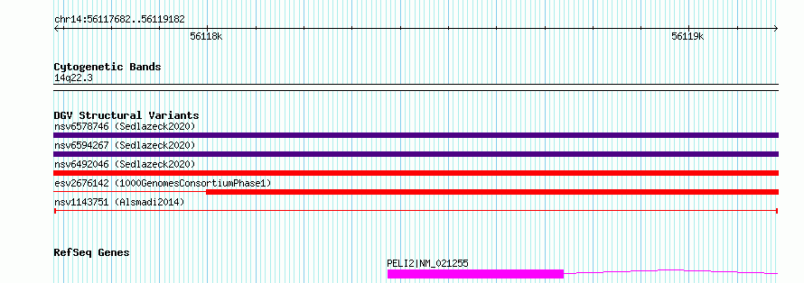 Variant DetailsVariant: nsv1143751| Internal ID | 19257617 | | Landmark | | | Location Information | | | Cytoband | 14q22.3 | | Allele length | | Assembly | Allele length | | hg38 | 1501 | | hg19 | 1501 |
