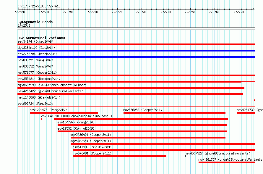 Variant DetailsVariant: nsv1143863Internal ID | 18905066 | Landmark | | Location Information | | Cytoband | 17q25.2 | Allele length | Assembly | Allele length | hg38 | 9701 | hg19 | 9701 |