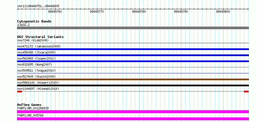 Variant DetailsVariant: nsv1144697| Internal ID | 19260909 | | Landmark | | | Location Information | | | Cytoband | 13q32.2 | | Allele length | | Assembly | Allele length | | hg38 | 55 | | hg19 | 55 |