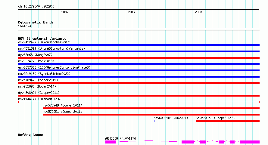 Variant DetailsVariant: nsv1144747| Internal ID | 19271125 | | Landmark | | | Location Information | | | Cytoband | 16p13.3 | | Allele length | | Assembly | Allele length | | hg38 | 3601 | | hg19 | 3601 |