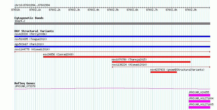 Variant DetailsVariant: nsv1144778| Internal ID | 18905343 | | Landmark | | | Location Information | | | Cytoband | 16q24.2 | | Allele length | | Assembly | Allele length | | hg38 | 1001 | | hg19 | 1001 |