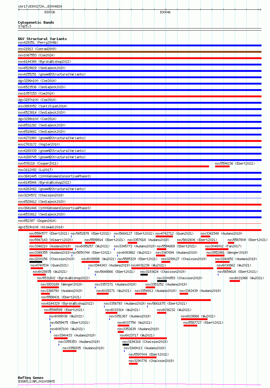 Variant DetailsVariant: nsv1144823| Internal ID | 19256593 | | Landmark | | | Location Information | | | Cytoband | 17q25.3 | | Allele length | | Assembly | Allele length | | hg38 | 2101 | | hg19 | 2101 |