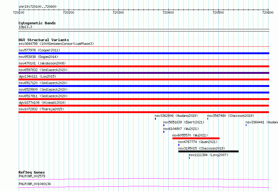 Variant DetailsVariant: nsv1144847| Internal ID | 19286795 | | Landmark | | | Location Information | | | Cytoband | 19p13.3 | | Allele length | | Assembly | Allele length | | hg38 | 501 | | hg19 | 501 |