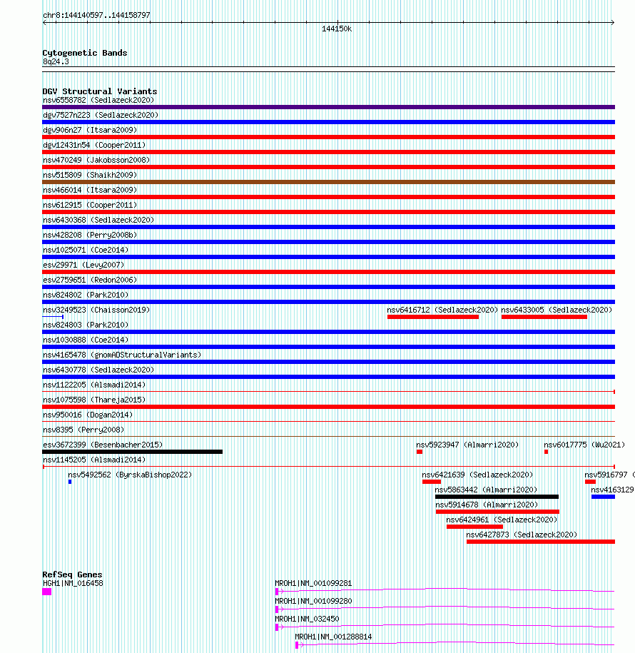 Variant DetailsVariant: nsv1145205| Internal ID | 19253241 | | Landmark | | | Location Information | | | Cytoband | 8q24.3 | | Allele length | | Assembly | Allele length | | hg38 | 18201 | | hg19 | 18201 |