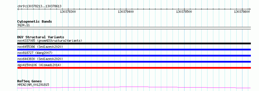 Variant DetailsVariant: nsv1145268| Internal ID | 19280197 | | Landmark | | | Location Information | | | Cytoband | 9q34.11 | | Allele length | | Assembly | Allele length | | hg38 | 401 | | hg19 | 401 |