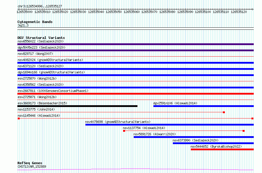 Variant DetailsVariant: nsv1145446| Internal ID | 19249846 | | Landmark | | | Location Information | | | Cytoband | 3q21.3 | | Allele length | | Assembly | Allele length | | hg38 | 132 | | hg19 | 132 |