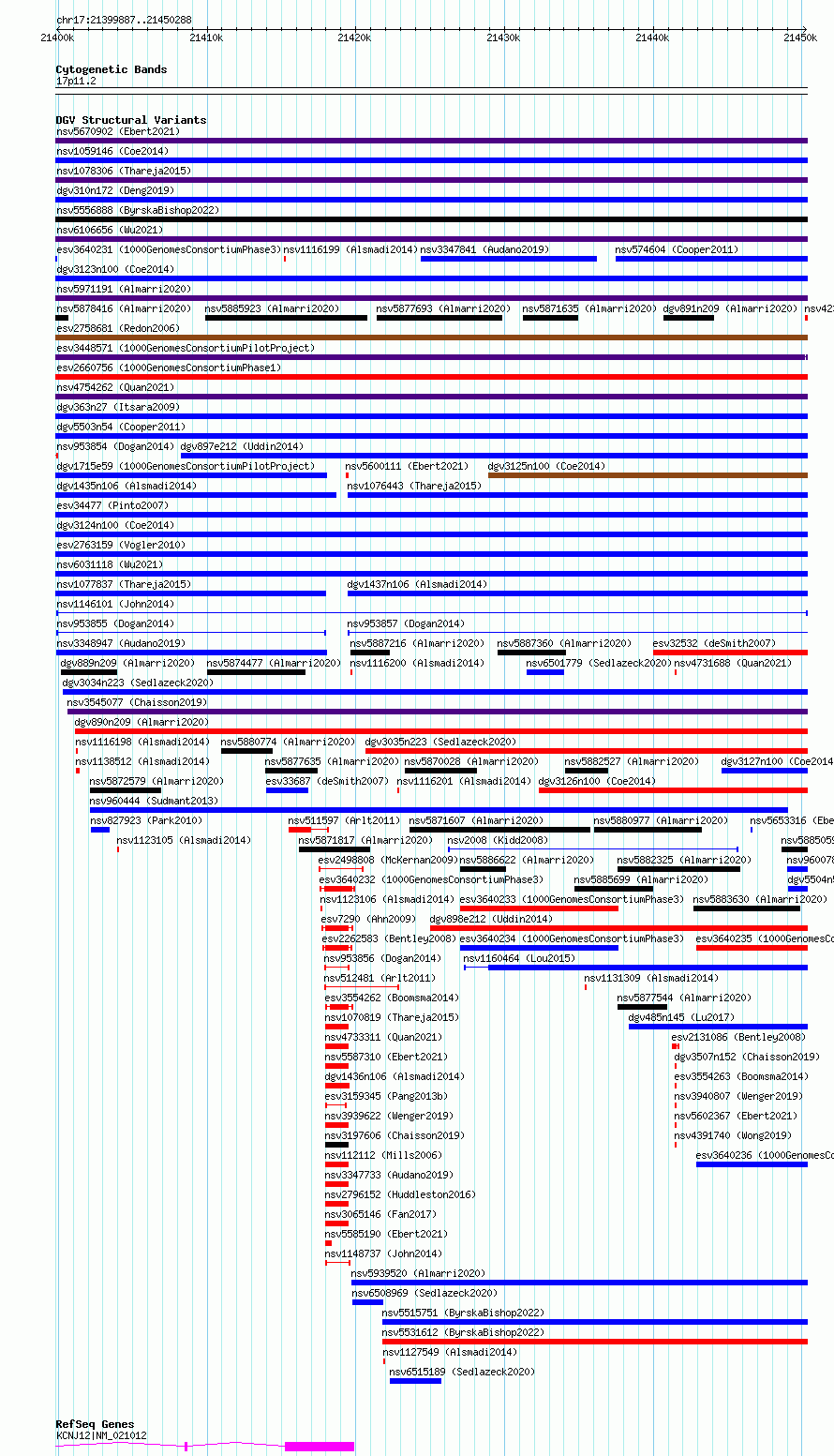 Variant DetailsVariant: nsv1146101| Internal ID | 19201852 | | Landmark | | | Location Information | | | Cytoband | 17p11.2 | | Allele length | | Assembly | Allele length | | hg38 | 50402 | | hg19 | 50402 |
