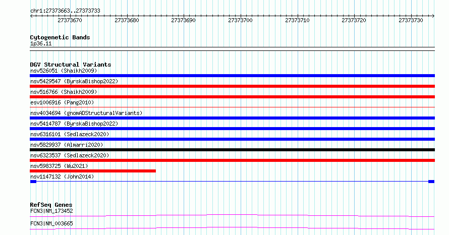 Variant DetailsVariant: nsv1147132| Internal ID | 19199880 | | Landmark | | | Location Information | | | Cytoband | 1p36.11 | | Allele length | | Assembly | Allele length | | hg38 | 71 | | hg19 | 71 |