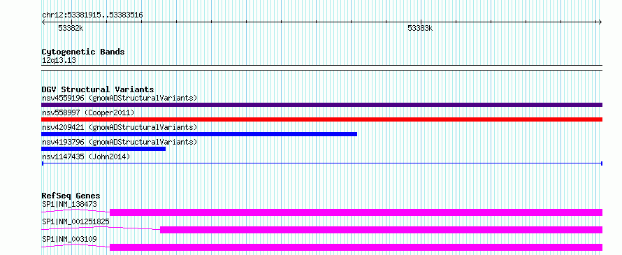 Variant DetailsVariant: nsv1147435| Internal ID | 19203406 | | Landmark | | | Location Information | | | Cytoband | 12q13.13 | | Allele length | | Assembly | Allele length | | hg38 | 1602 | | hg19 | 1602 |