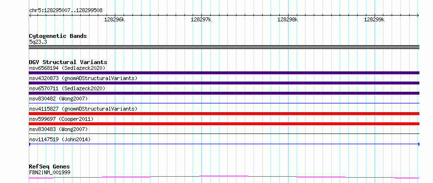 Variant DetailsVariant: nsv1147519| Internal ID | 19197042 | | Landmark | | | Location Information | | | Cytoband | 5q23.3 | | Allele length | | Assembly | Allele length | | hg38 | 4502 | | hg19 | 4502 |