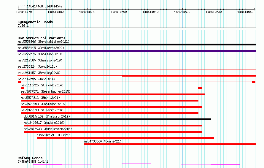 Variant DetailsVariant: nsv1147555| Internal ID | 19195535 | | Landmark | | | Location Information | | | Cytoband | 7q36.1 | | Allele length | | Assembly | Allele length | | hg38 | 75 | | hg19 | 75 |