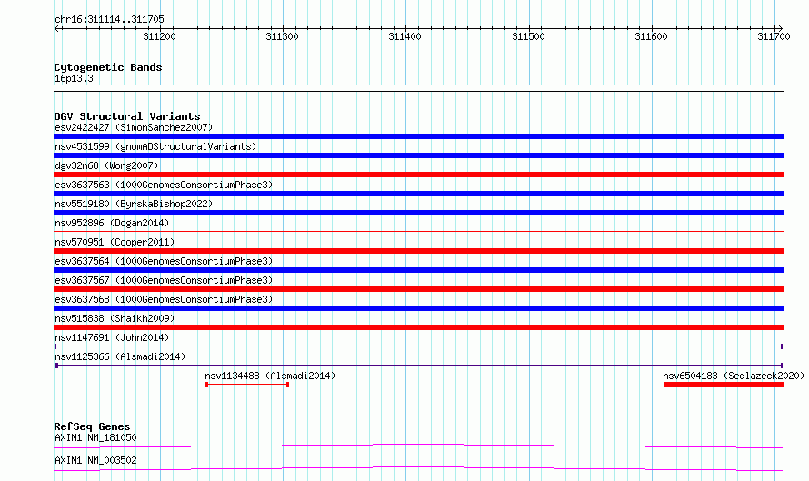 Variant DetailsVariant: nsv1147691| Internal ID | 19195892 | | Landmark | | | Location Information | | | Cytoband | 16p13.3 | | Allele length | | Assembly | Allele length | | hg38 | 592 | | hg19 | 592 |