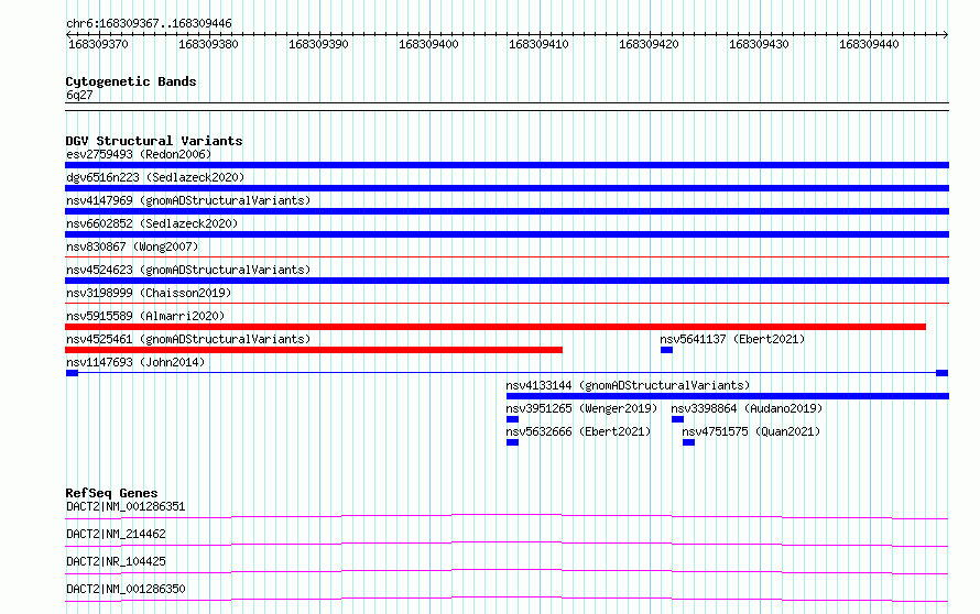 Variant DetailsVariant: nsv1147693| Internal ID | 19195880 | | Landmark | | | Location Information | | | Cytoband | 6q27 | | Allele length | | Assembly | Allele length | | hg38 | 80 | | hg19 | 80 |