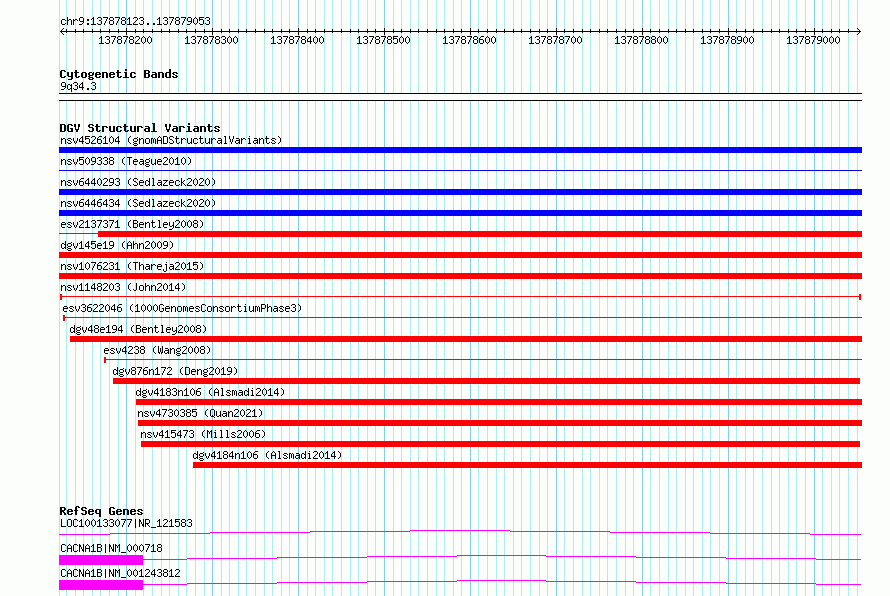 | | Variant Type | CNV deletion | | Copy Number | | | Allele State | | | Allele Origin | | | Probe Count | | | Validation Flag | | | Merged Status | M | | Merged Variants | | | Supporting Variants | nssv4001711 | | Samples | KWB1 | | Known Genes | CACNA1B | | Method | Sequencing | | Analysis | HugeSeq | | Platform | Illumina HiSeq 2000 | | Comments | | | Reference | John_et_al_2014 | | Pubmed ID | 26484159 | | Accession Number(s) | nsv1148203