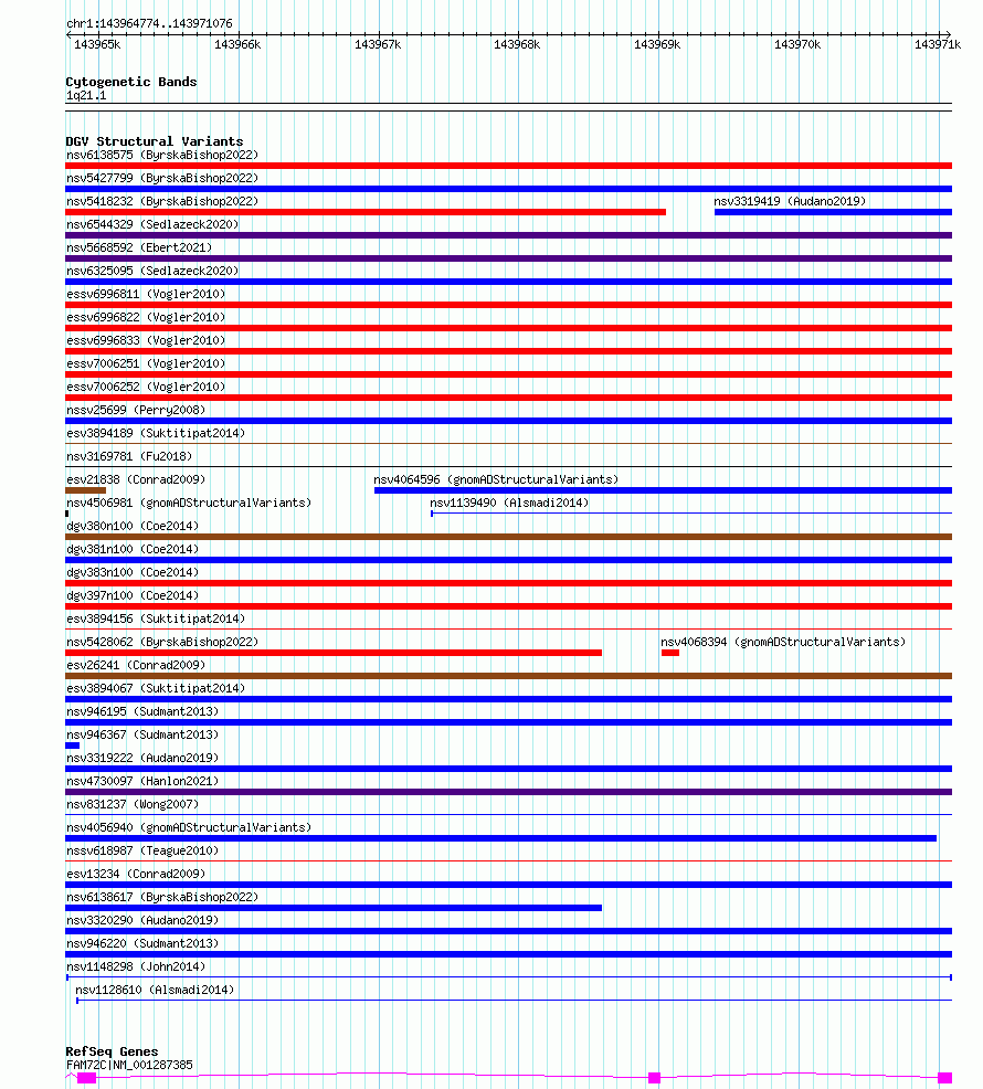 Variant DetailsVariant: nsv1148298| Internal ID | 19199898 | | Landmark | | | Location Information | | | Cytoband | 1p11.2 | | Allele length | | Assembly | Allele length | | hg38 | 6303 | | hg19 | 6302 |