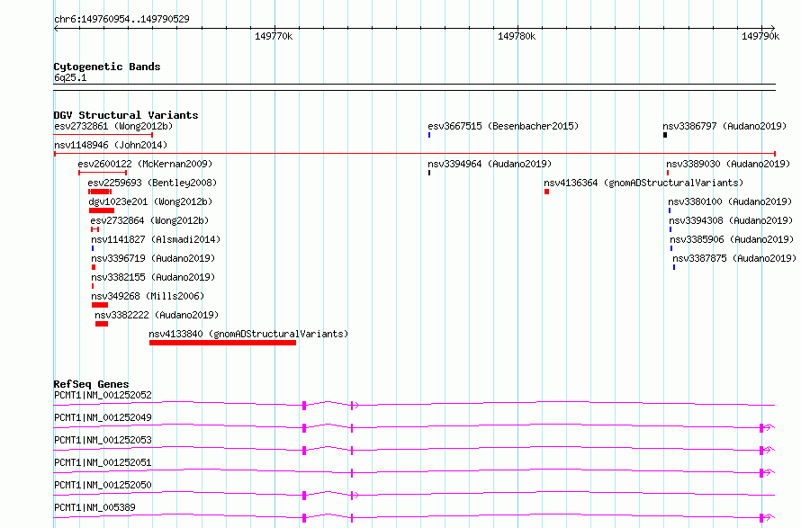 Variant DetailsVariant: nsv1148946| Internal ID | 18853639 | | Landmark | | | Location Information | | | Cytoband | 6q25.1 | | Allele length | | Assembly | Allele length | | hg38 | 29576 | | hg19 | 29576 |