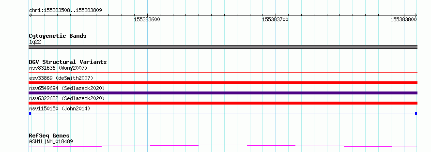 Variant DetailsVariant: nsv1150150| Internal ID | 19201900 | | Landmark | | | Location Information | | | Cytoband | 1q22 | | Allele length | | Assembly | Allele length | | hg38 | 302 | | hg19 | 302 |