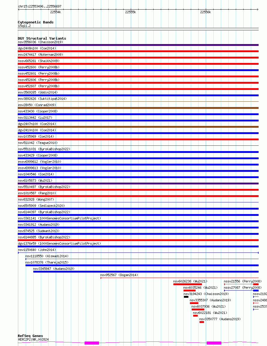 Variant DetailsVariant: nsv1150640| Internal ID | 19202595 | | Landmark | | | Location Information | | | Cytoband | 15q11.2 | | Allele length | | Assembly | Allele length | | hg38 | 3202 | | hg19 | 3202 |