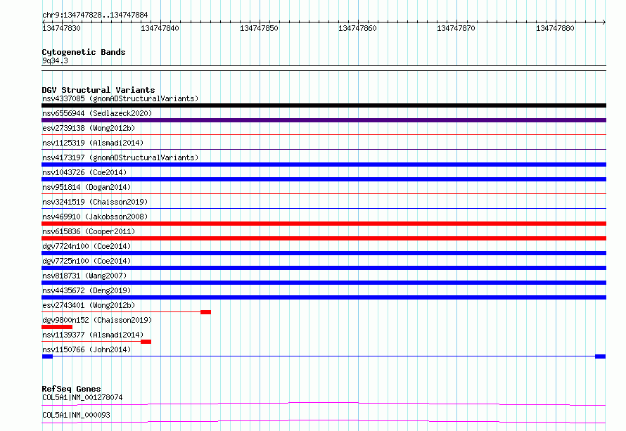 Variant DetailsVariant: nsv1150766| Internal ID | 19198574 | | Landmark | | | Location Information | | | Cytoband | 9q34.3 | | Allele length | | Assembly | Allele length | | hg38 | 57 | | hg19 | 57 |