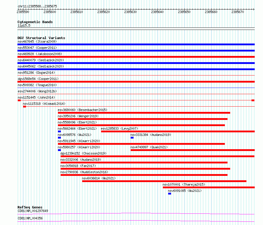 Variant DetailsVariant: nsv1151445| Internal ID | 19197397 | | Landmark | | | Location Information | | | Cytoband | 11p15.5 | | Allele length | | Assembly | Allele length | | hg38 | 88 | | hg19 | 88 |
