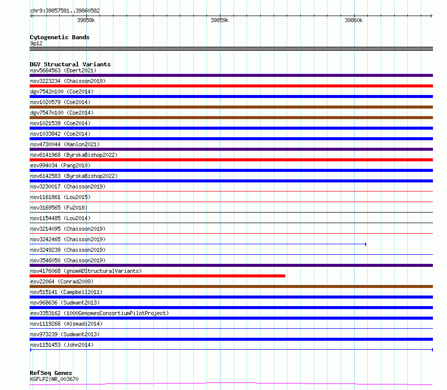 Variant DetailsVariant: nsv1151453| Internal ID | 19201089 | | Landmark | | | Location Information | | | Cytoband | 9p12 | | Allele length | | Assembly | Allele length | | hg38 | 3002 | | hg19 | 3002 |
