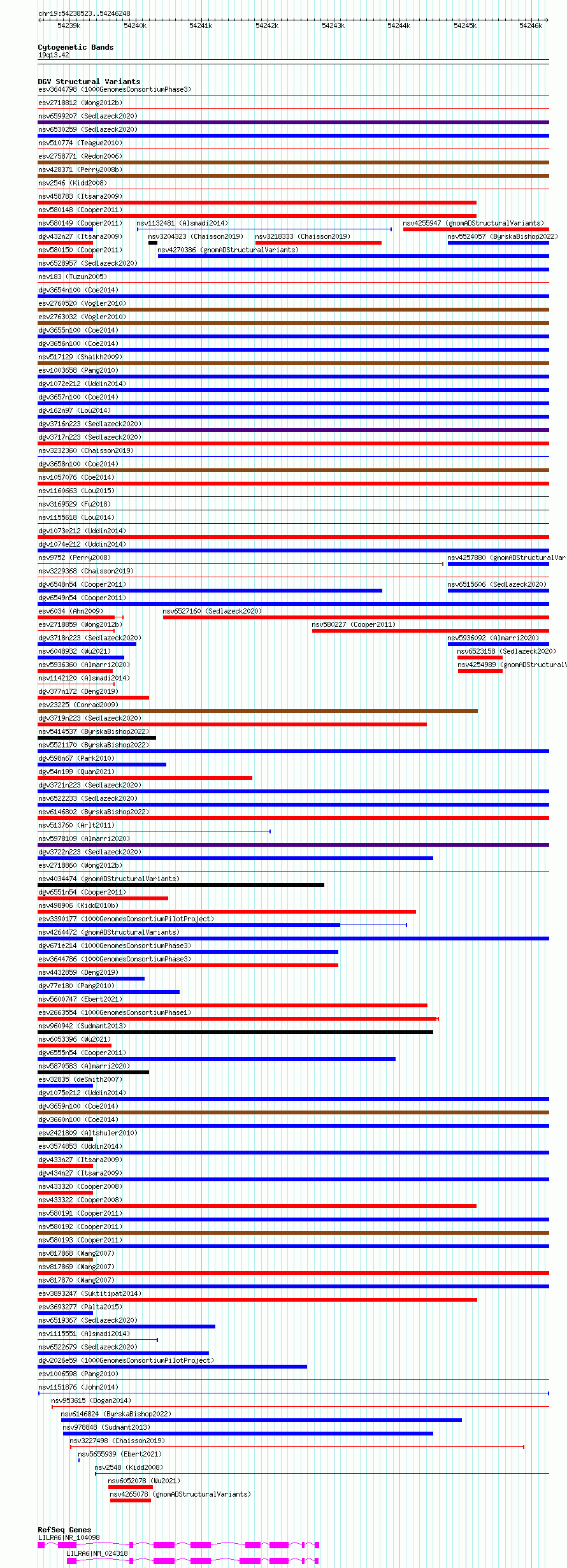 Variant DetailsVariant: nsv1151876| Internal ID | 19196136 | | Landmark | | | Location Information | | | Cytoband | 19q13.42 | | Allele length | | Assembly | Allele length | | hg38 | 7726 | | hg19 | 7702 |