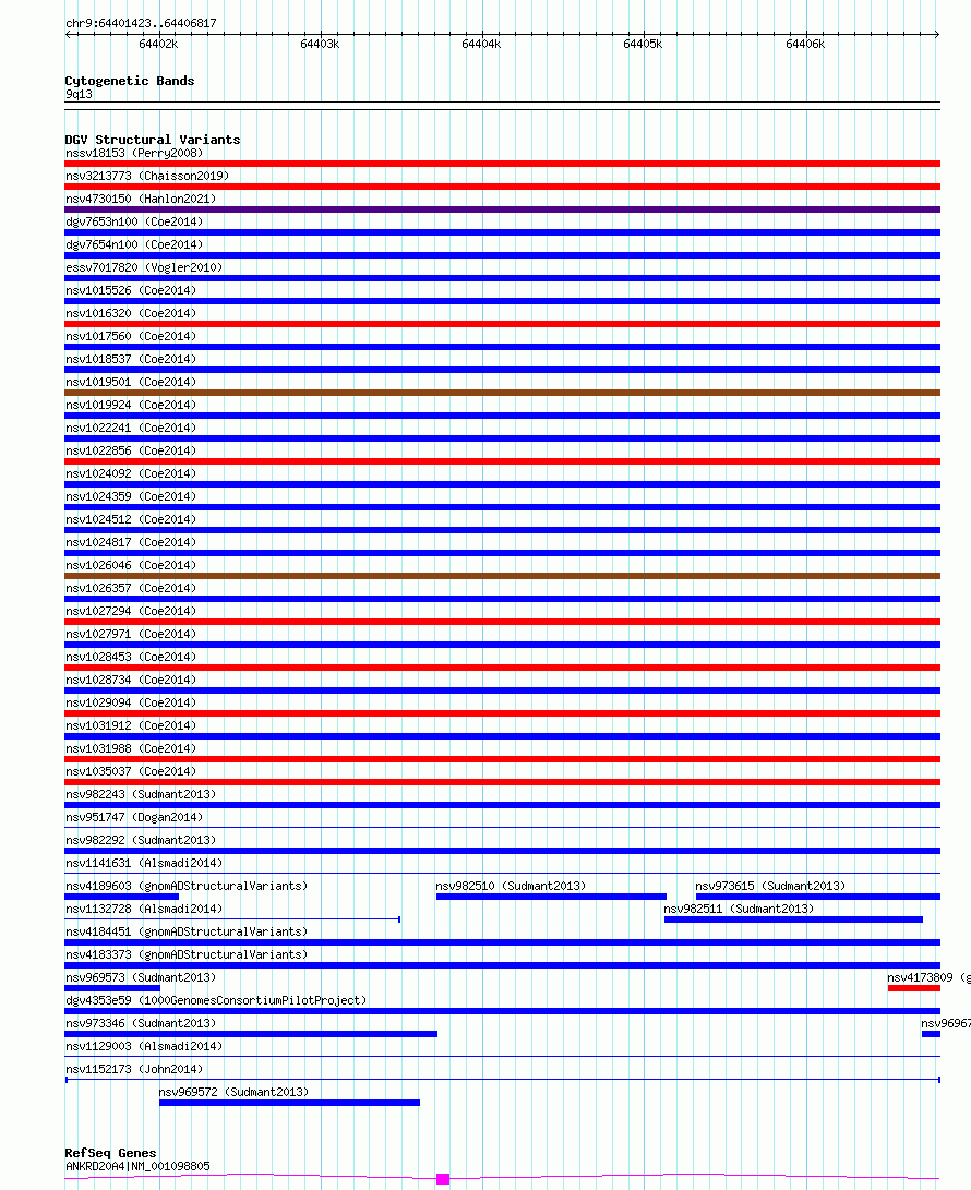 Variant DetailsVariant: nsv1152173| Internal ID | 19200476 | | Landmark | | | Location Information | | | Cytoband | 9p12 | | Allele length | | Assembly | Allele length | | hg38 | 5395 | | hg19 | 5402 |