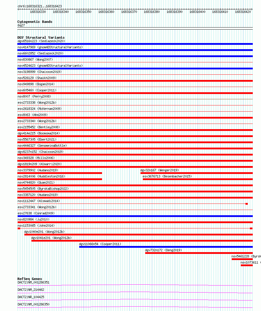 Variant DetailsVariant: nsv1153065| Internal ID | 19195552 | | Landmark | | | Location Information | | | Cytoband | 6q27 | | Allele length | | Assembly | Allele length | | hg38 | 103 | | hg19 | 103 |