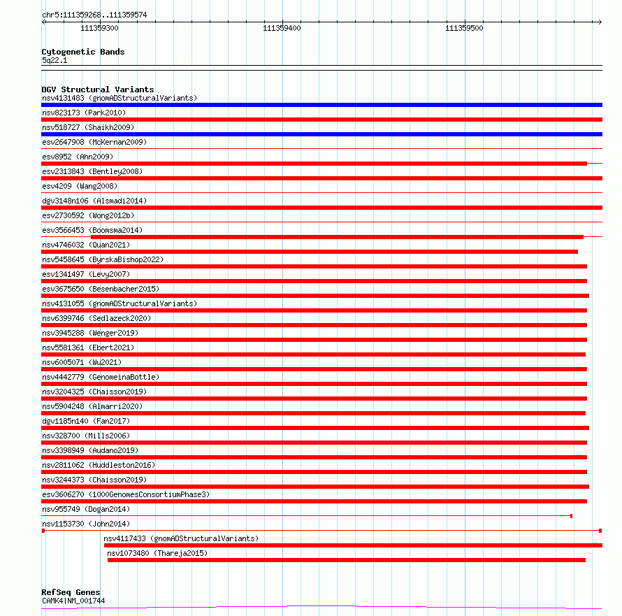 Variant DetailsVariant: nsv1153730| Internal ID | 19202192 | | Landmark | | | Location Information | | | Cytoband | 5q22.1 | | Allele length | | Assembly | Allele length | | hg38 | 307 | | hg19 | 307 |