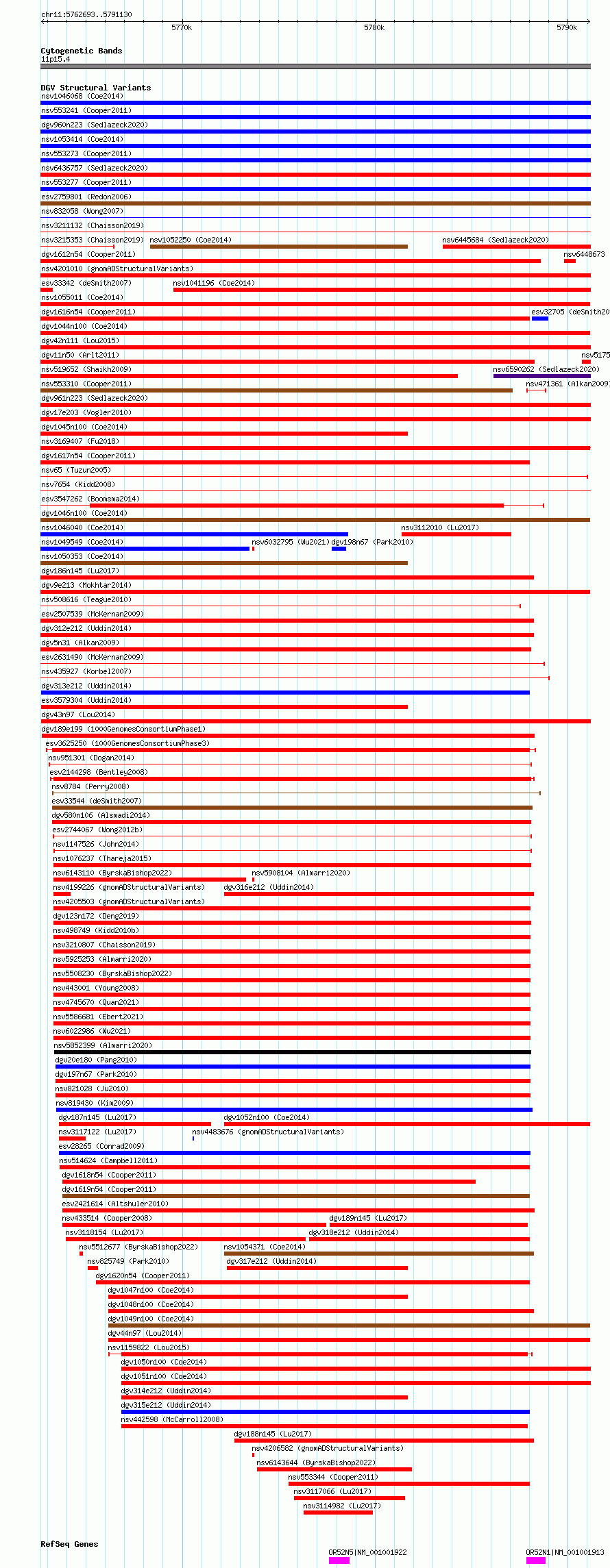 Variant DetailsVariant: nsv1159820| Internal ID | 19303101 | | Landmark | | | Location Information | | | Cytoband | 11p15.4 | | Allele length | | Assembly | Allele length | | hg38 | 28438 | | hg19 | 28438 |