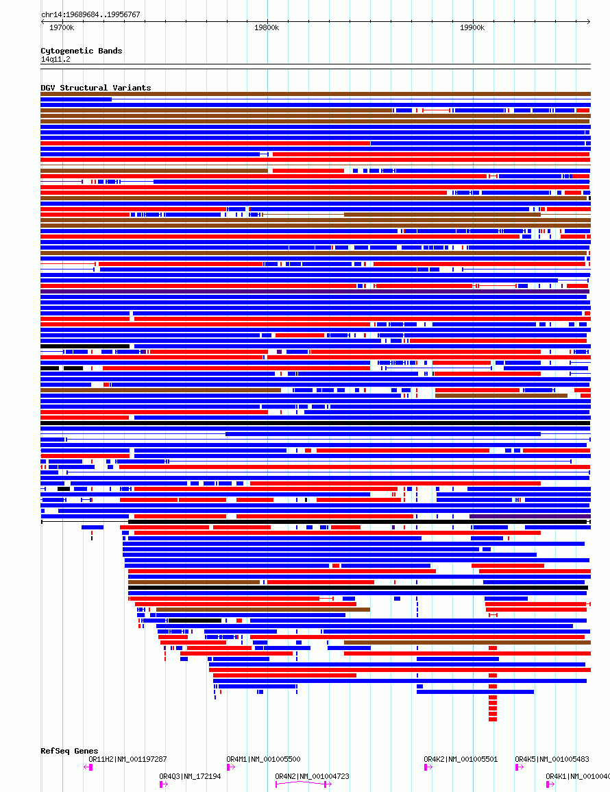 Variant DetailsVariant: nsv1160159 | Internal ID | 19304499 | | Landmark | | | Location Information | | | Cytoband | 14q11.2 | | Allele length | | Assembly | Allele length | | hg38 | 267084 | | hg19 | 267084 |