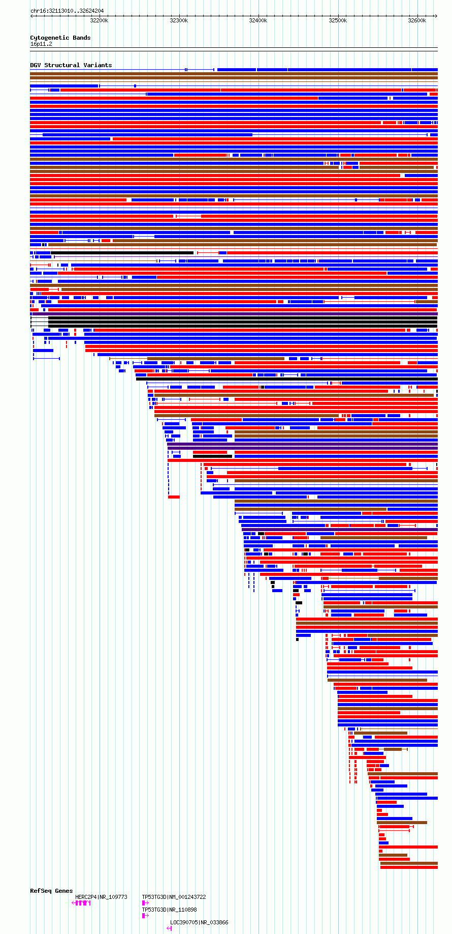 Variant DetailsVariant: nsv1160389 | Internal ID | 19303785 | | Landmark | | | Location Information | | | Cytoband | 16p11.2 | | Allele length | | Assembly | Allele length | | hg38 | 511195 | | hg19 | 511195 |