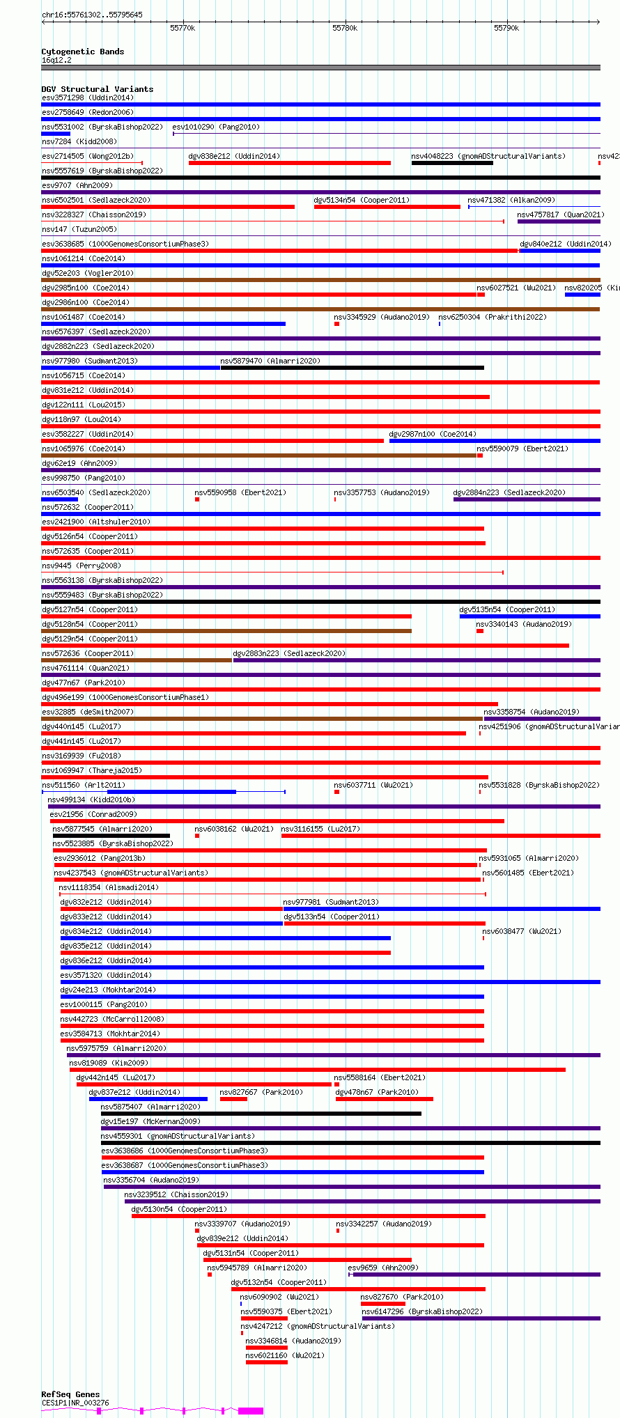 Variant DetailsVariant: nsv1160422 | Internal ID | 19304220 | | Landmark | | | Location Information | | | Cytoband | 16q12.2 | | Allele length | | Assembly | Allele length | | hg38 | 34344 | | hg19 | 34344 |