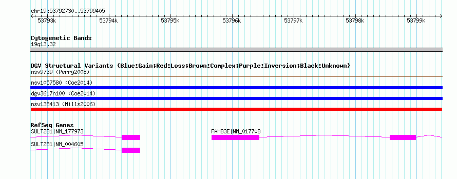 Variant DetailsVariant: nsv138413 | Internal ID | 16915431 | | Landmark | | | Location Information | | | Cytoband | 19q13.32 | | Allele length | | Assembly | Allele length | | hg38 | 6676 | | hg19 | 6676 | | hg18 | 6676 | | hg17 | 6676 |