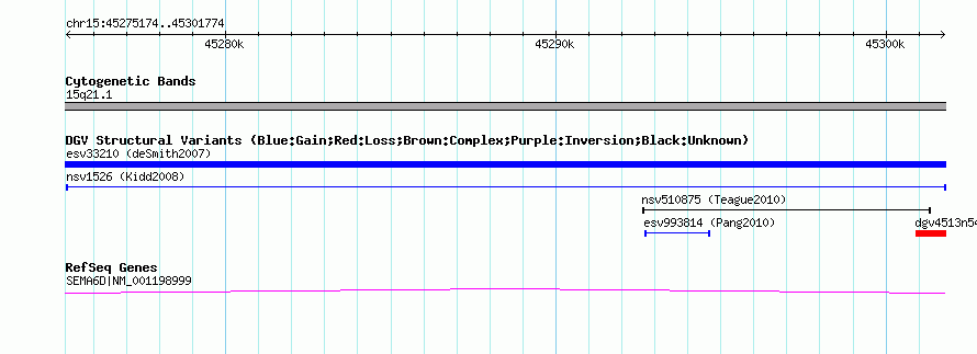 Variant DetailsVariant: nsv1526| Internal ID | 15199403 | | Landmark | | | Location Information | | | Cytoband | 15q21.1 | | Allele length | | Assembly | Allele length | | hg38 | 10224 | | hg19 | 10224 | | hg18 | 10224 | | hg17 | 10224 |