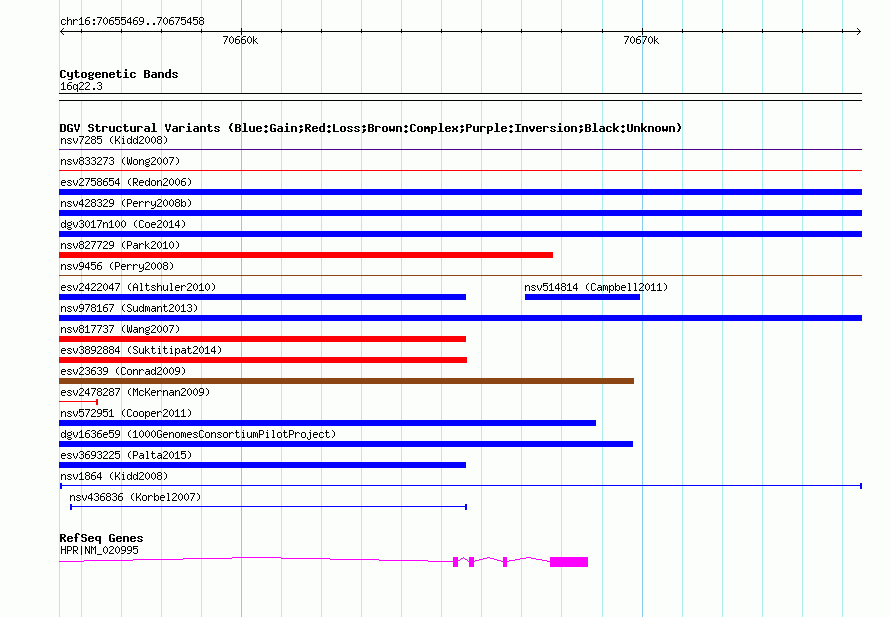 Variant DetailsVariant: nsv1864| Internal ID | 15546427 | | Landmark | | | Location Information | | | Cytoband | 16q22.2 | | Allele length | | Assembly | Allele length | | hg38 | 17599 | | hg19 | 17599 | | hg18 | 17599 | | hg17 | 17599 |