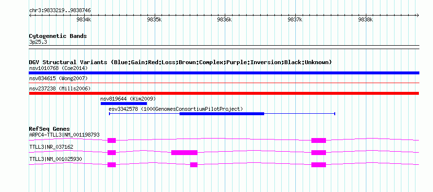Variant DetailsVariant: nsv237238 | Internal ID | 17024137 | | Landmark | | | Location Information | | | Cytoband | 3p25.3 | | Allele length | | Assembly | Allele length | | hg38 | 5528 | | hg19 | 5528 | | hg18 | 5528 | | hg17 | 5528 |