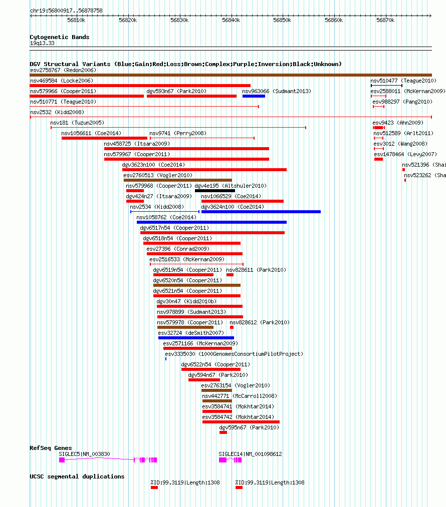 | | Variant Type | CNV deletion | | Copy Number | | | Allele State | | | Allele Origin | | | Probe Count | | | Validation Flag | | | Merged Status | M | | Merged Variants | | | Supporting Variants | nssv4370, nssv11001, nssv9559, nssv5755, nssv10196, nssv7449 | | Samples | NA18507, NA12156, NA12878, NA18956, NA15510, NA19129 | | Known Genes | SIGLEC14, SIGLEC5 | | Method | Sequencing | | Analysis | End-sequence pairs were mapped to the human genome assembly (hg17) using a previously described algorithm (Tuzun et al 2005) | | Platform | Capillary | | Comments | | | Reference | Kidd_et_al_2008 | | Pubmed ID | 18451855 | | Accession Number(s) | nsv2532